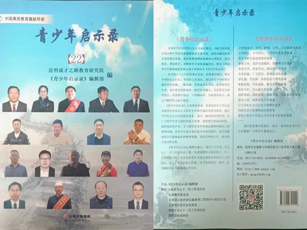 《青少年启示录》由云南省关工委头脑品德委员会、青少年启示录编辑部主理,是一部彰显协调人生、探讨青少年生长成才的宝典,是启发激励青少年康健成才的精神食粮,将通过云南省关工委统一捐赠给贫困山区的中小学,让更多的青少年从中获得启发、受到教育,一直斗争康健生长。