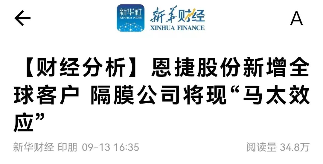 此前新华财经报道提及,“2022年,中国企业占有全球隔膜市场份额80%以上。从隔膜下游电池厂需求端来看,以新能源汽车为代表的强劲新动能,仍然有望一连拉动隔膜行业生长。”“剖析以为,市场南北极分解,隔膜企业盈利能力或将拉开差别。”